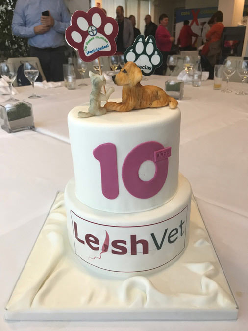Coinciding with the AVEPA-SEVC Congress held in Madrid last October, the LeishVet group celebrated its 10th anniversary with all the assistants preparing a very special symposium. The assistants, over 300 veterinarians, had the opportunity to enjoy an interesting scientific programme in which most of the LeishVet members participated: G. Baneth, P. Bourdeau, L. Cardoso, G. Miró, G. Oliva, MG. Pennisi and L. Solano-Gallego went through the different aspects of canine and feline leishmaniosis (from different reservoirs, new means of transmission, diagnostic techniques, treatments used and the resistency issues as well as prevention.) We were also honoured with three guests speakers: Dr. Fabio Nogueira (current President of Brasileis), clinical veterinary who spoke about the current situation of canine leishmaniosis in Brazil and the new treatment options approved by the government as an alternative to euthanasia. Dra. Mª Angeles Daza, spoke in second place, responsible for the Nephrology Department of the Veterinary Clinic Hospital of Madrid’s University of Veterinary Medicine (UCM), who explained the clinical treatment of the renal patient with leishmaniosis. Finally, Dr. Rogelio López-Vélez presented an interesting lecture regarding human leishmaniosis and answered G. Miró’s questions related to the zoonotic aspects of this important disease.